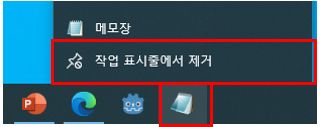 다시 해당 아이콘에 우클릭 후 팝업에서 작업 표시줄에서 제거 항목을 선택하세요.