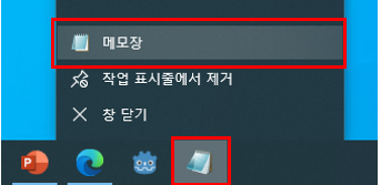 이후 작업 표시줄에 메모장 아이콘이 추가되는데요.