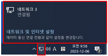 시스템 트레이 옆에 보통 위 이미지와 같은 아이콘이 있는데요. 바로 네트워크를 설정하는 아이콘입니다.