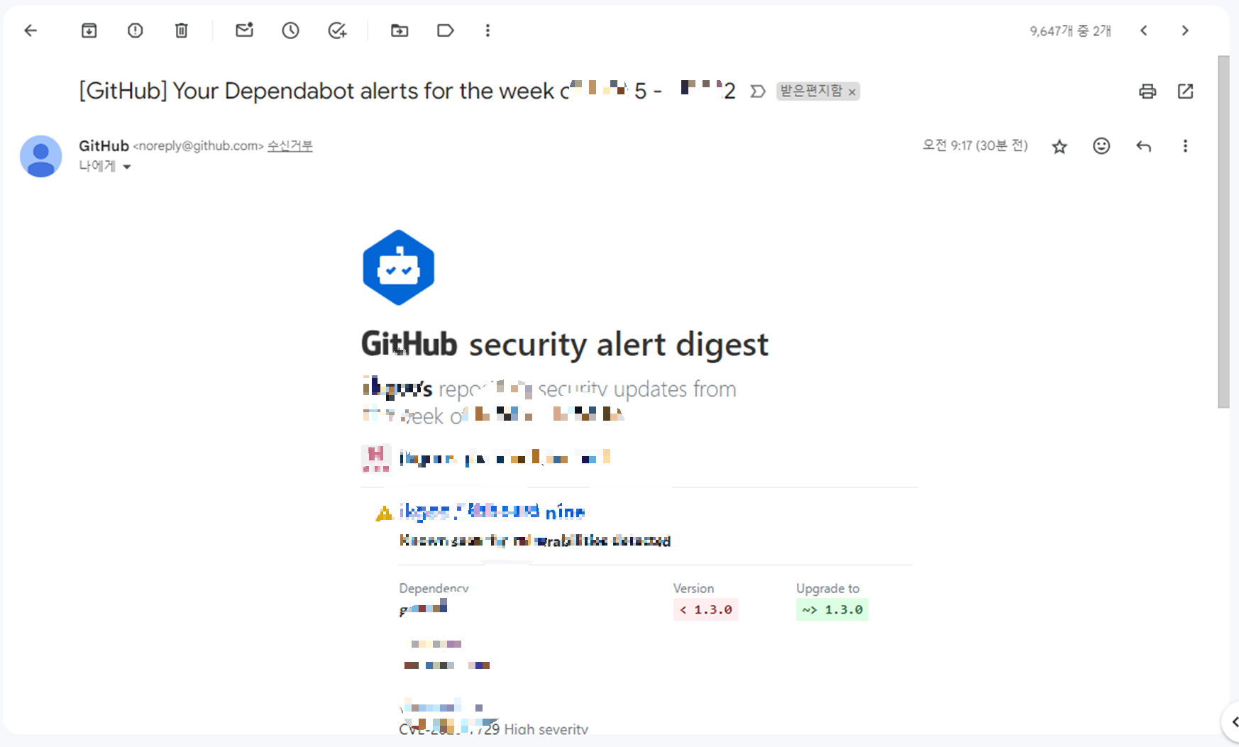 현재 보고 있는 메일 아래쪽 부분에 위 이미지같은 부분이 생깁니다.