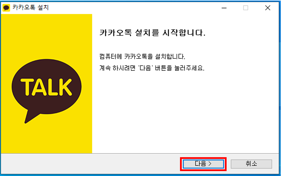위 이미지와 같은 팝업이 열리는데 이제 카카오톡 설치가 시작되는 것입니다.