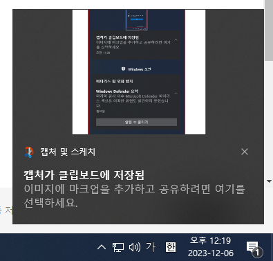 위 이미지에 표시된 부분은 윈도우에서 여러가지 상황에 따른 알람을 표시해주는 영역입니다.