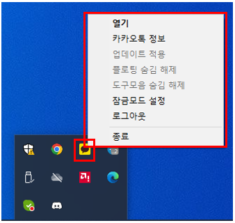 트레이 아이콘은 마우스 우클릭을 하면 보통 팝업(100%가 아니라 대부분 열립니다)이 열립니다.