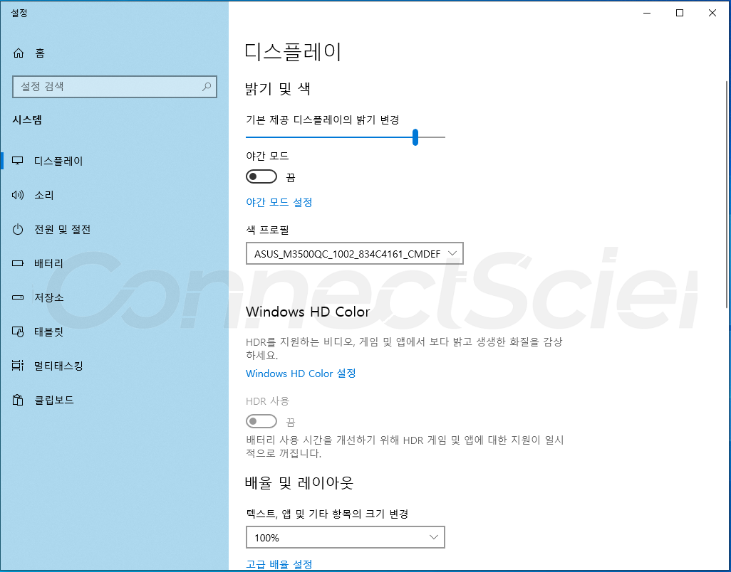 디스플레이 항목을 선택하면 위와 같은 팝업이 열리는데요.