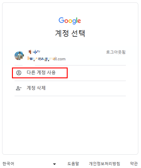 위 이미지 처럼 나타나면 '다른 계정 사용' 클릭하세요.