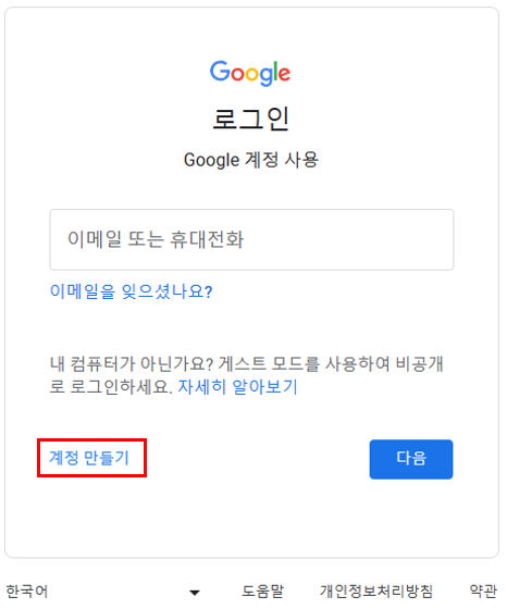 계정 만들기 클릭하세요.