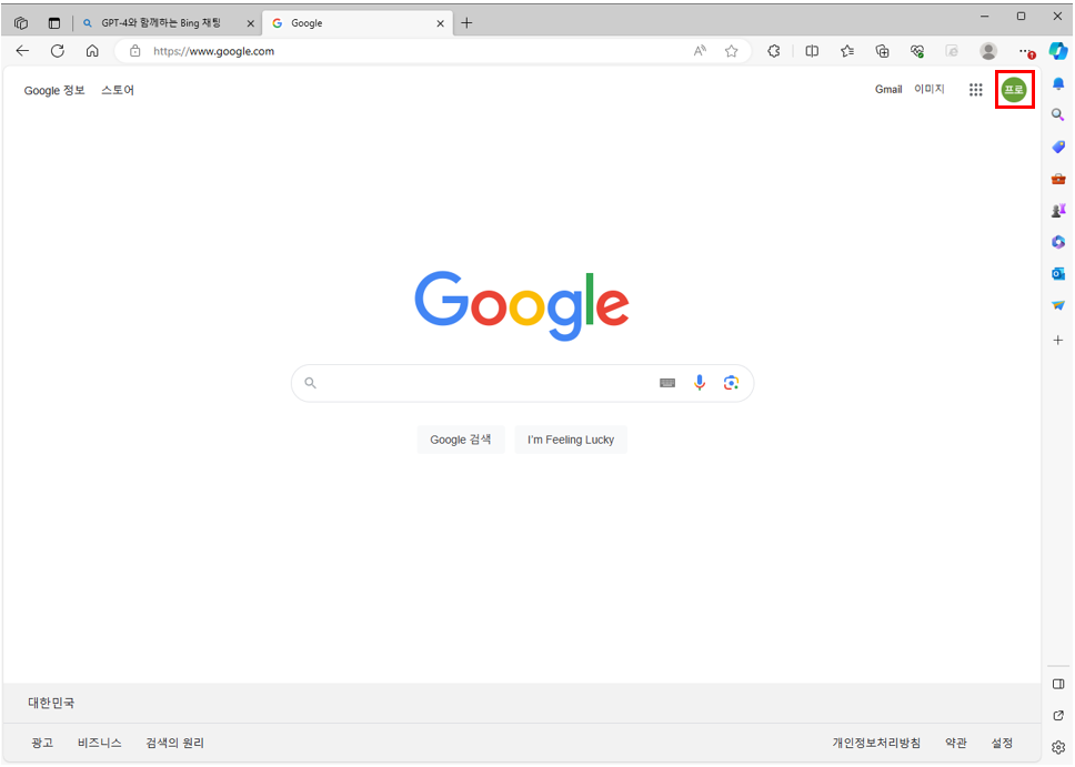 엣지 브라우저를 열어 주소 입력창에 'google.com' 이라는 주소를 입력해 보겠습니다.
