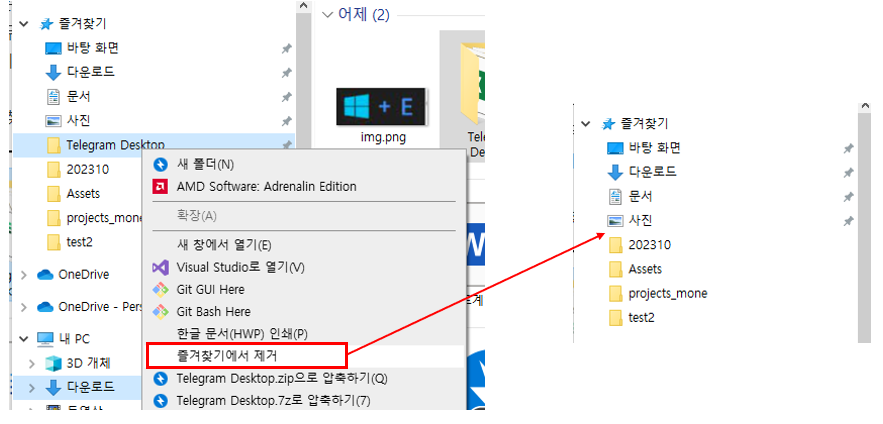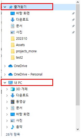 - 사용자가 자주 찾는 폴더를 저장하여 좀 더 해당 폴더를 빠르게 접근하기 위한 기능입니다. 물로 삭제가 도능합니다.